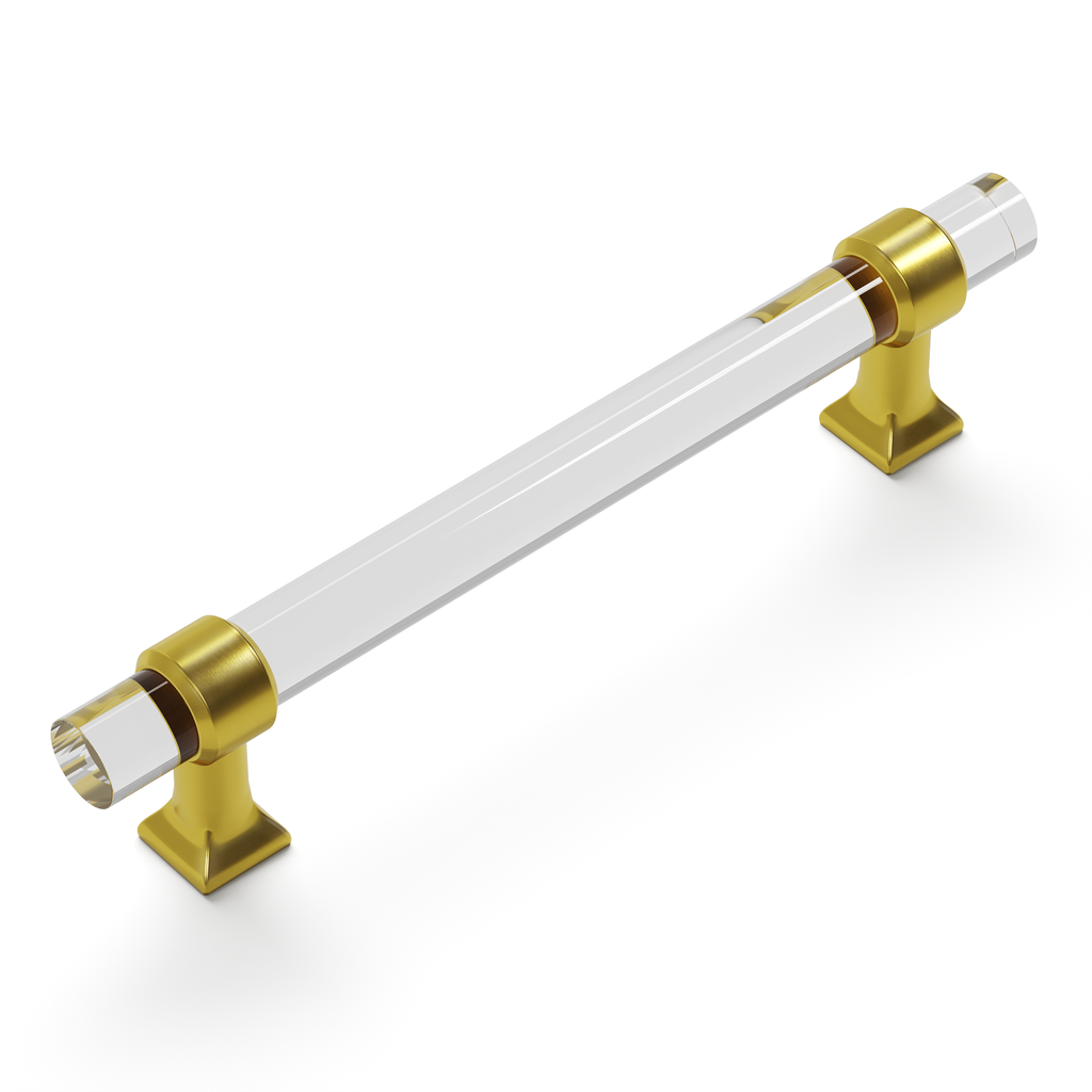 Crystal Palace Pull 5-1/16 Inch (128mm) Center to Center Crysacrylic with Brushed Golden Brass Finish