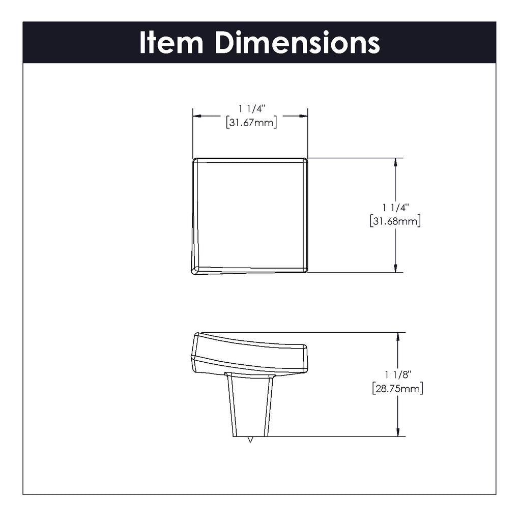 Flex Knob 1-1/4 Inch Square Satin Nickel Finish