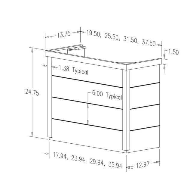 - Available in standard 24-3/4" height